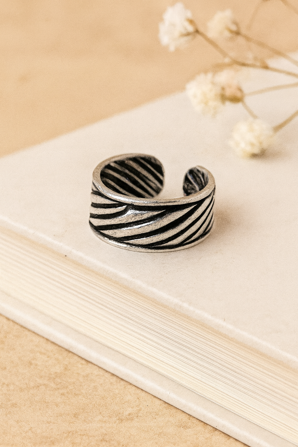 Este anillo midi de Plata 925 destaca por su diseño multi banda lisa y trenzada, que aporta textura, volumen y un estilo contemporáneo. Su composición combina líneas limpias con un nudo central, logrando una pieza versátil y visualmente atractiva que se adapta a distintas combinaciones.