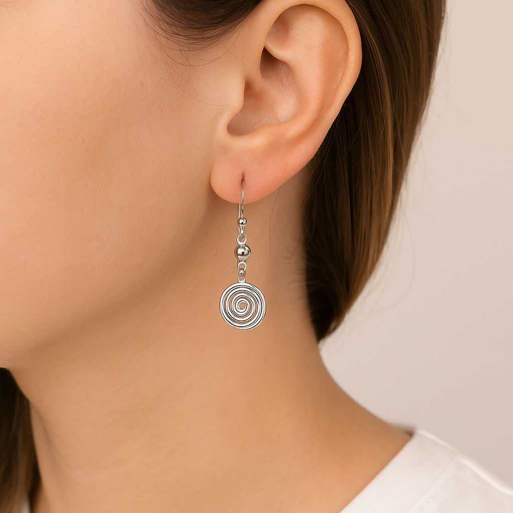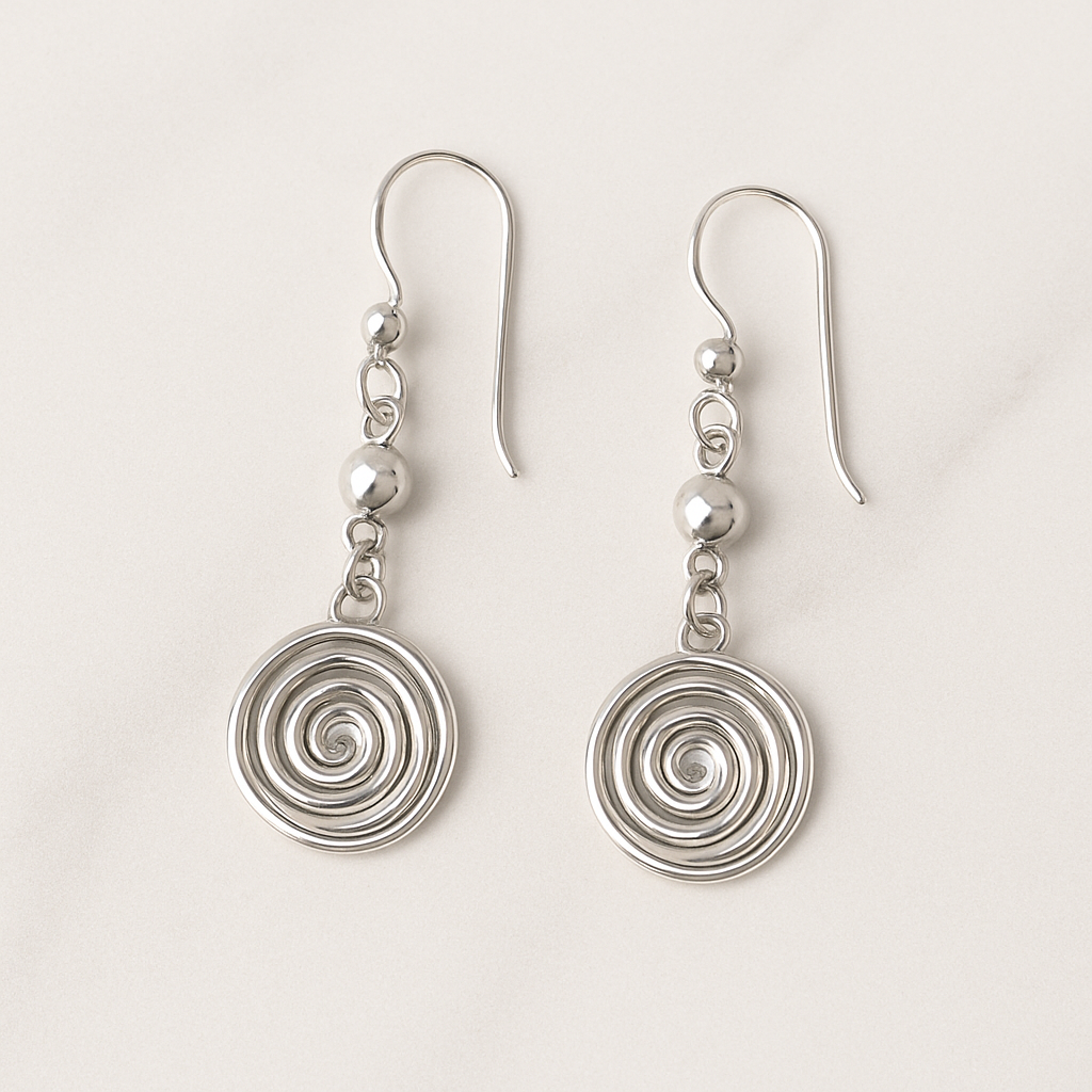 Un diseño lleno de simbolismo y estilo. Estos aros de plata 925 combinan esferas elegantes con una placa espiral, un símbolo de transformación, evolución y conexión con el universo. Perfectos para quienes buscan un accesorio único que represente crecimiento y energía positiva.
