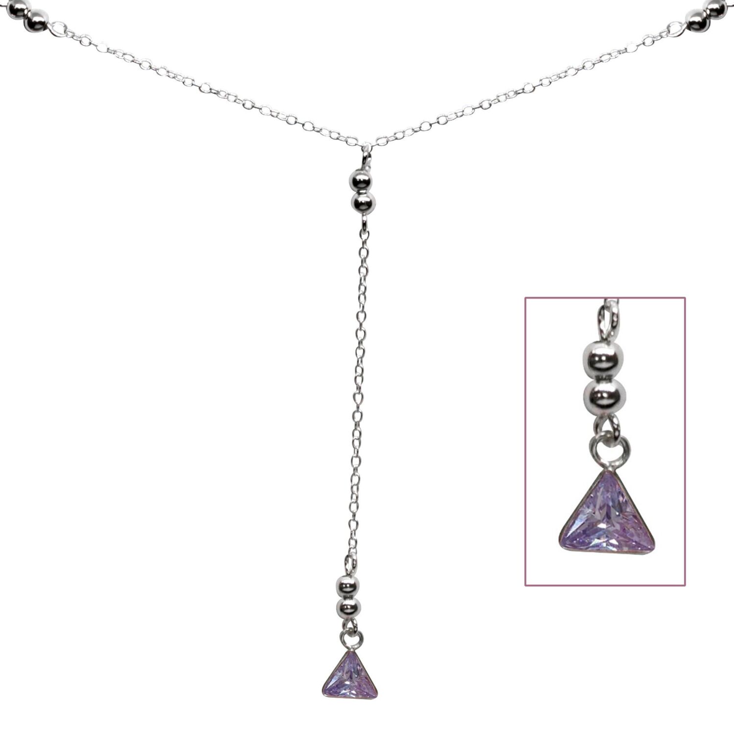 Collar Esferas y Triángulo Circón Lavanda – Plata 925