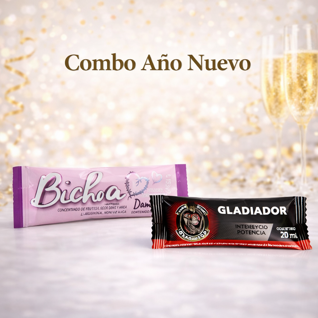 Incluye Bichota Estimulante Femenino y Gladiador Afrodisíaco Masculino, dos fórmulas de acción rápida para comenzar el año con más deseo, energía y conexión.