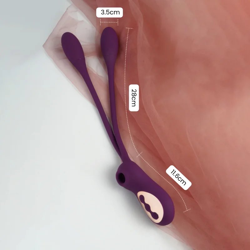Bunny Duo combina un succionador de clítoris con 10 niveles de intensidad y dos vibradores tipo huevo en sus orejas flexibles, ideales para estimulación vaginal y anal simultánea o para juegos compartidos entre mujeres. Su diseño suave y ergonómico se adapta al cuerpo y ofrece sensaciones potentes con apariencia inocente.