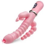 Lick 3 en 1 vibrador y consolador doble varilla para estimulación del canal vaginal, clitoris y anal.